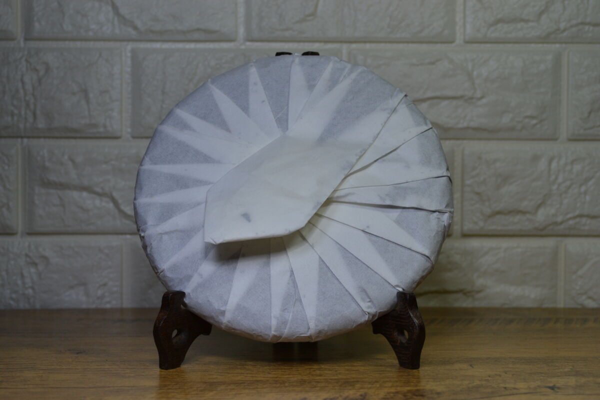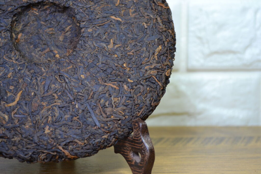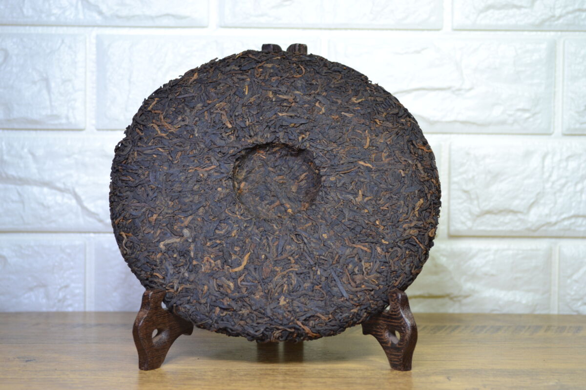 This tea is made from raw materials collected in Menghai County in 2016 and has a typical taste. It has a sweet and dry taste with pronounced woody notes, and a bitter aftertaste that transforms into a soft sweetness. This taste is often mistaken for that of old tea, as both old and Menghai teas share a common taste note – aged astringency. Despite its seemingly light appearance, the tea has a surprisingly powerful, deep, and long-lasting effect. It is a great choice for those who appreciate aged teas. The full cake is packaged in a palm leaf box.
