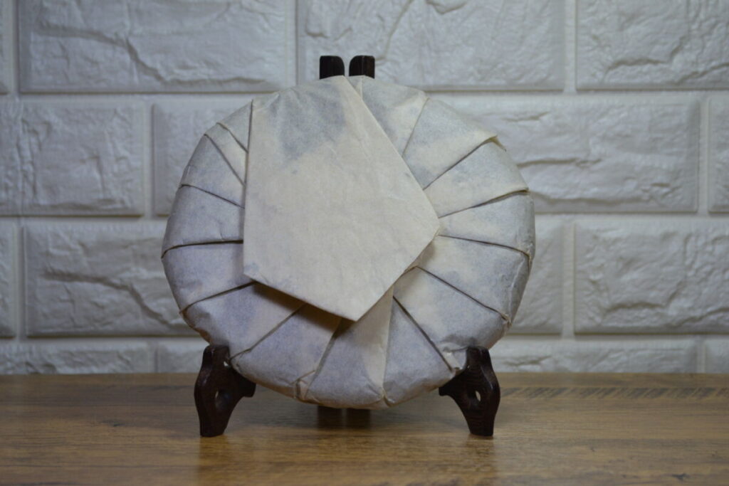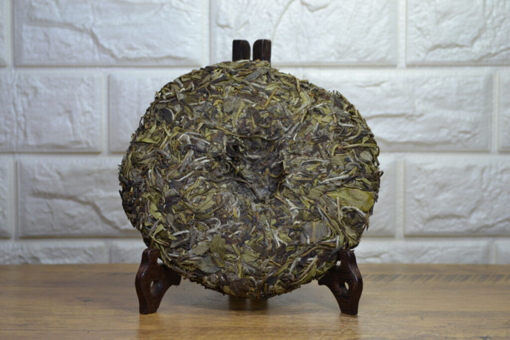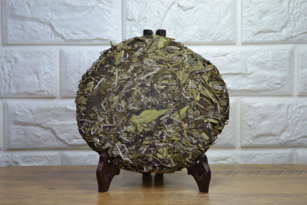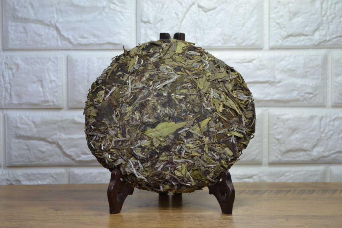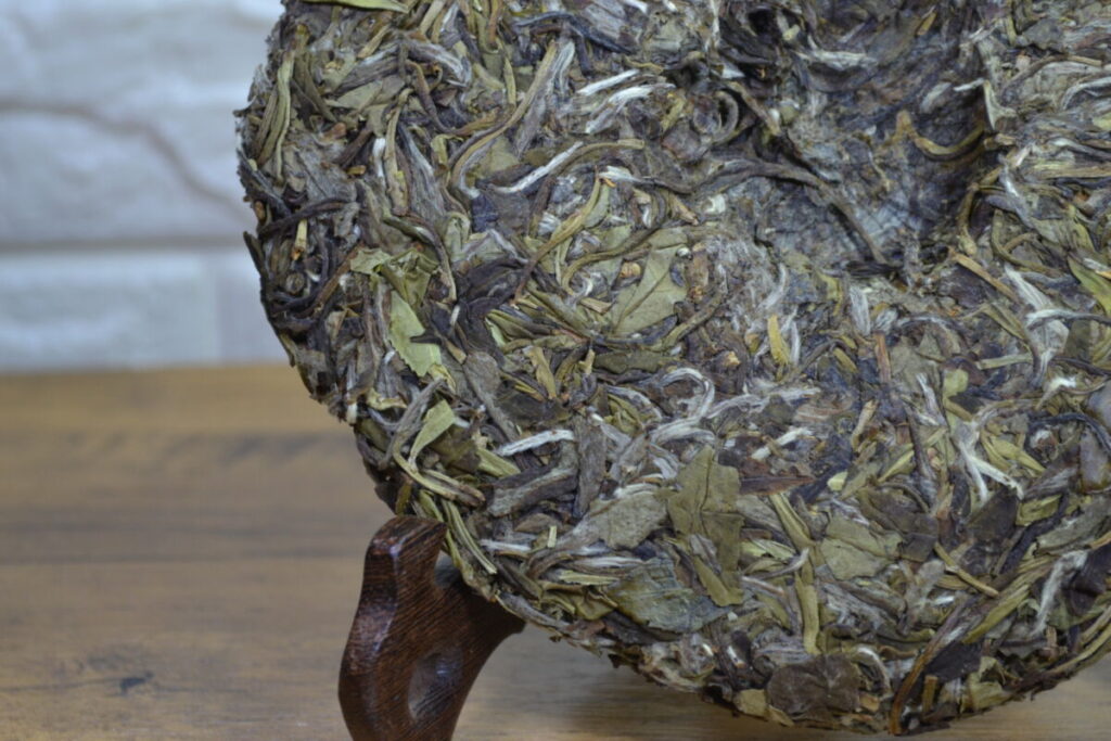 “Lao Bai 2.0. In 2018, we bought exquisite white tea in the village of Xiao Ken, not far from the town of Zhen He, the birthplace of white tea. The farmer from whom we bought the tea swore that after aging for 5-6 years, the tea would become amazing. We believed him and stored 2 boxes for the future. And then, just as our supply of Lao Bai ran out, we remembered those boxes. We pressed the tea and the result was truly impressive. Unlike Lao Bai 1.0, which we purchased ready-made, we pressed Lao Bai 2.0 ourselves and had the opportunity to control the leaf quality. The difference in quality was evident. The tea is harvested from the Zhen He Da Bai bush, as tradition requires. Because the tea is prepared using traditional manual techniques, it not only carries the flavor of white tea but also features a subtle yet distinct note of red tea. This note becomes clearer and stronger with age, which connoisseurs and enthusiasts highly value. The large leaves allow this tea to be stored for quite a long time under the right conditions. It has a powerful, sweetly delicate taste, with both volume and subtlety.